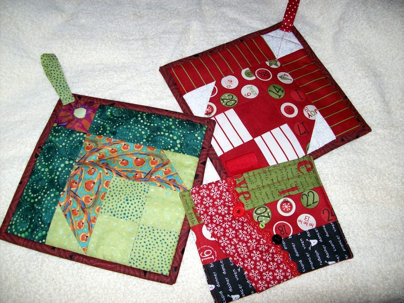 And the two potholders to match, plus my own design - Shoop-Shoop Bag, which I suggested my partner use to corrale all her Christmas shopping receipts. I also included various other goodies not shown here but included candy, a holiday magazine, some Starbuck's cocoa, and potpourri. Thanks Shawnee - I loved this table runner swap!